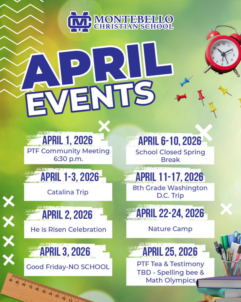 Explore what’s happening this month at Montebello Christian School! From classroom activities and outreach programs to special assemblies and celebrations, stay up to date with our latest events and opportunities to get involved.
